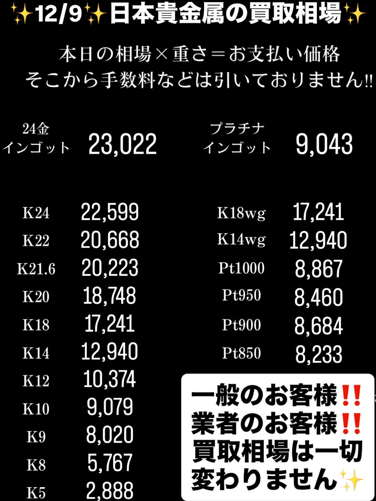 ✨日本貴金属✨買取相場✨