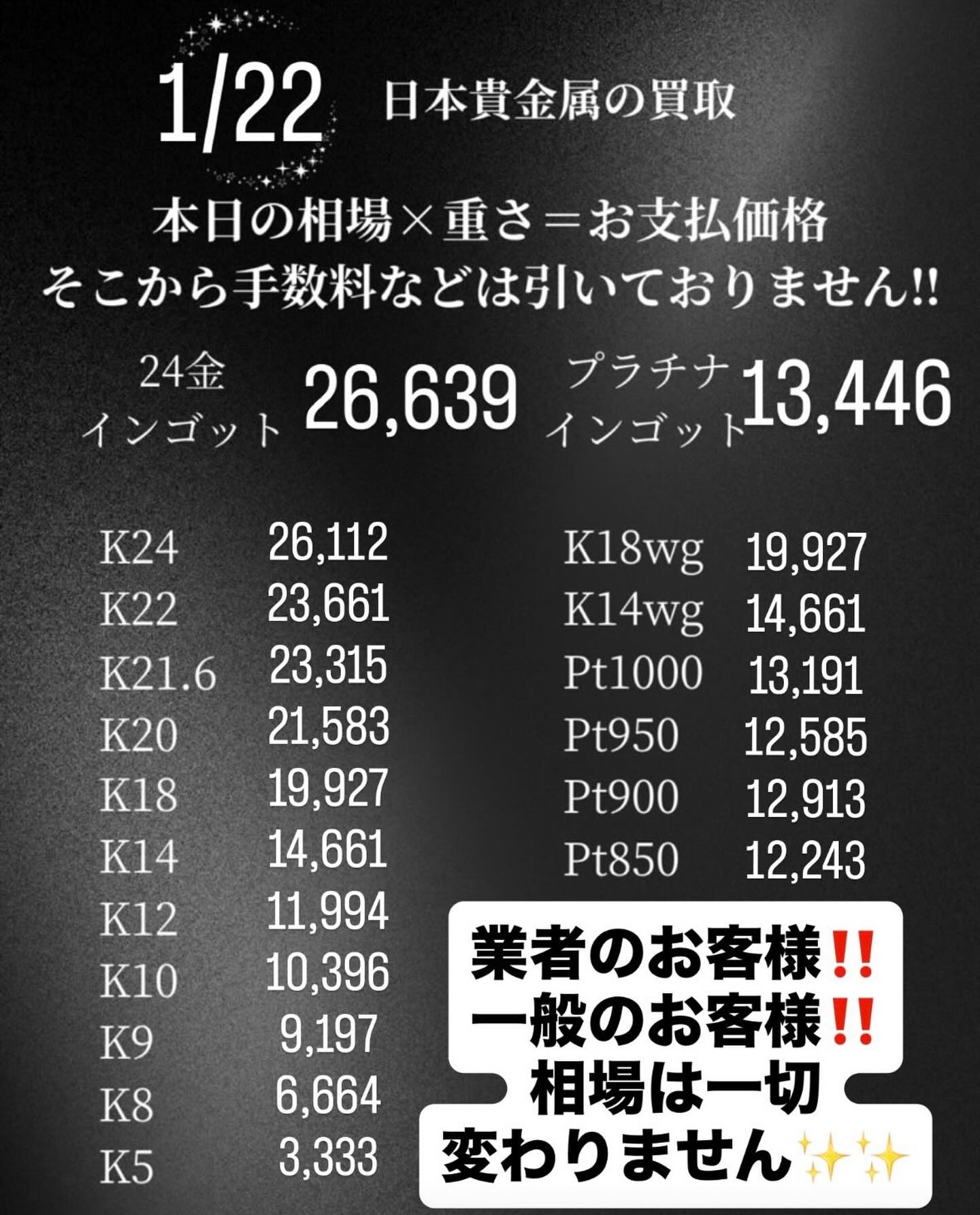 ✨日本貴金属✨御徒町店✨本日相場✨