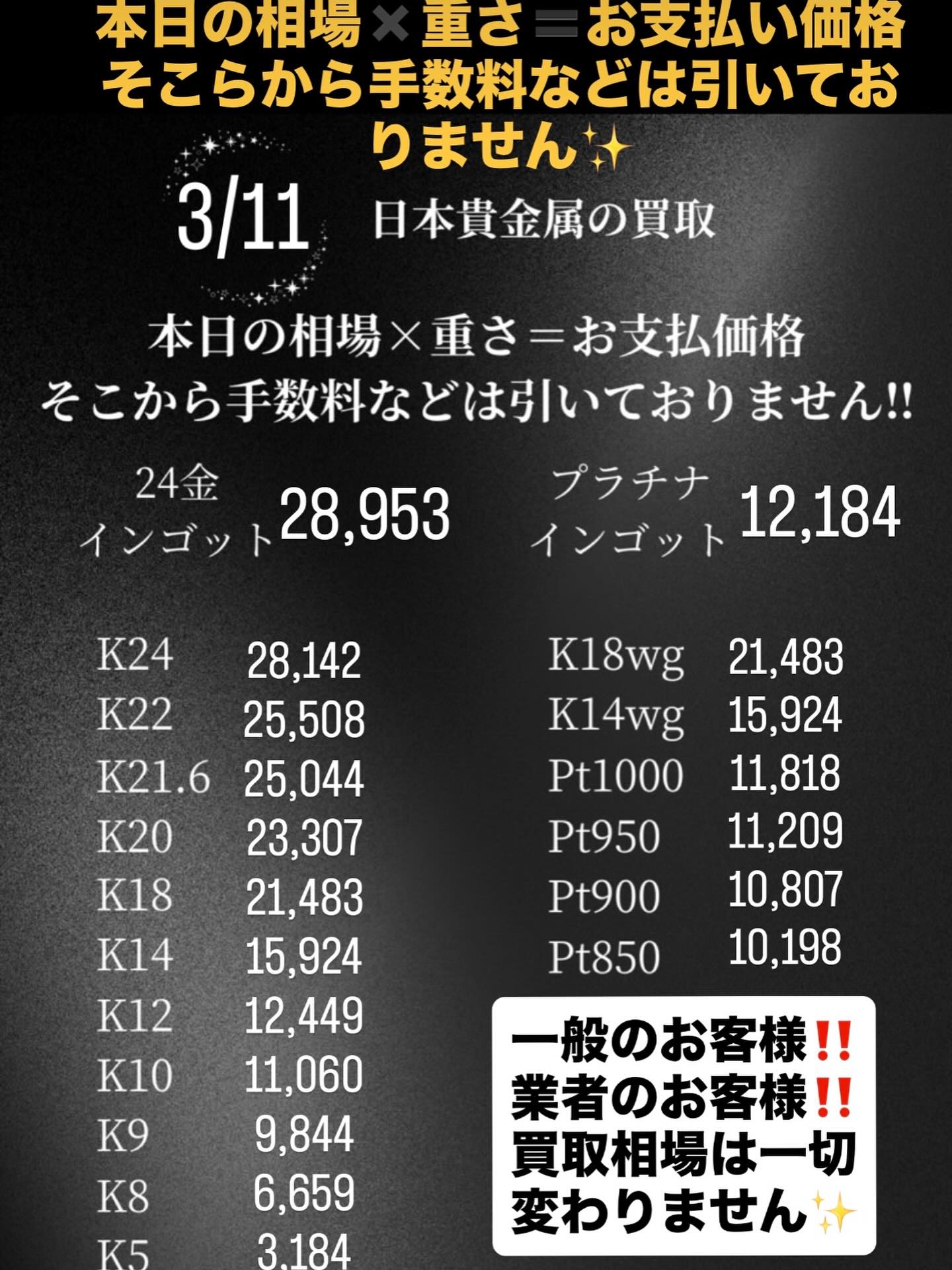 当日の買取相場×お持ち込みいただいた商品の重さ