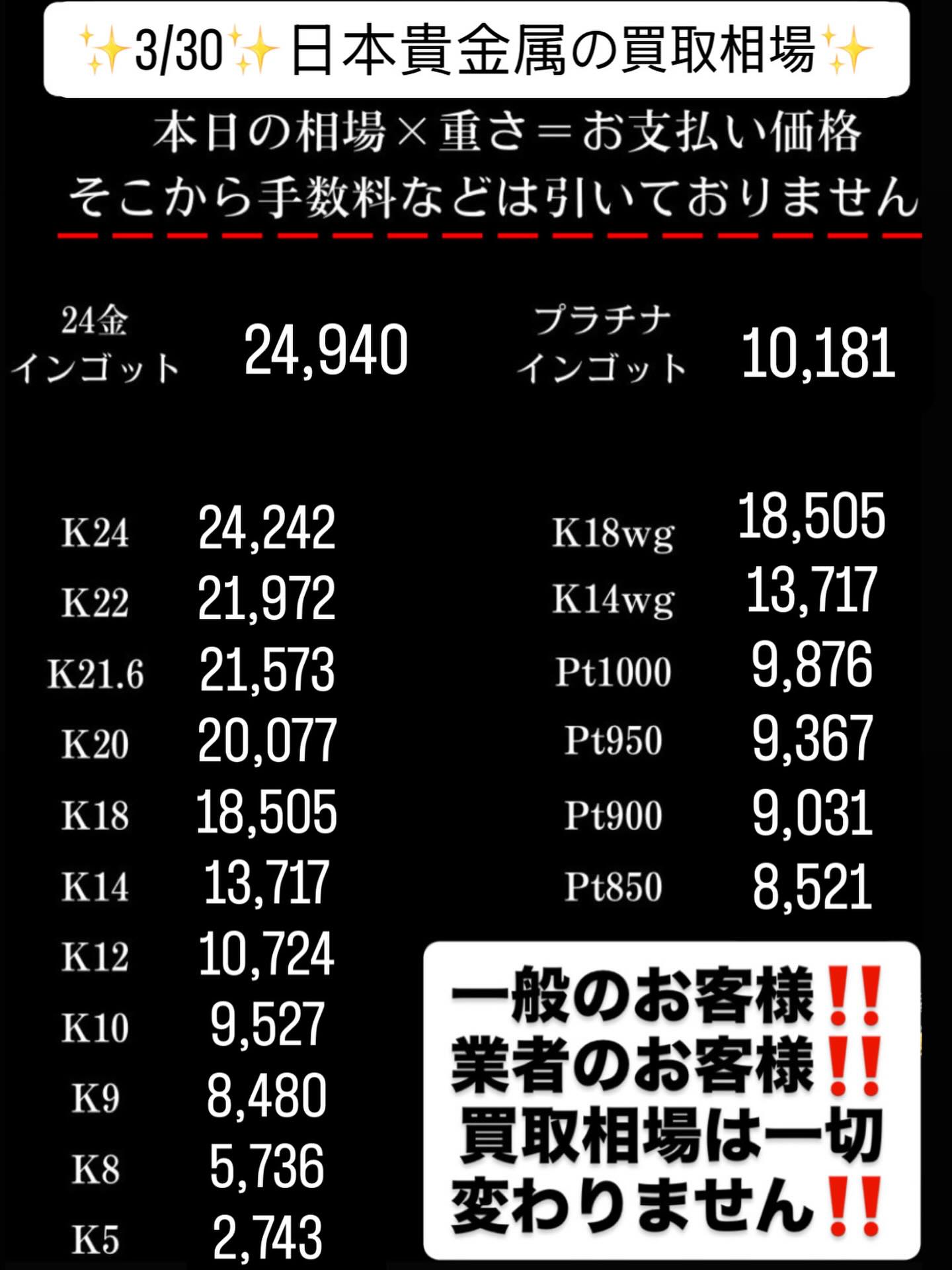 ✨日本貴金属✨買取相場✨