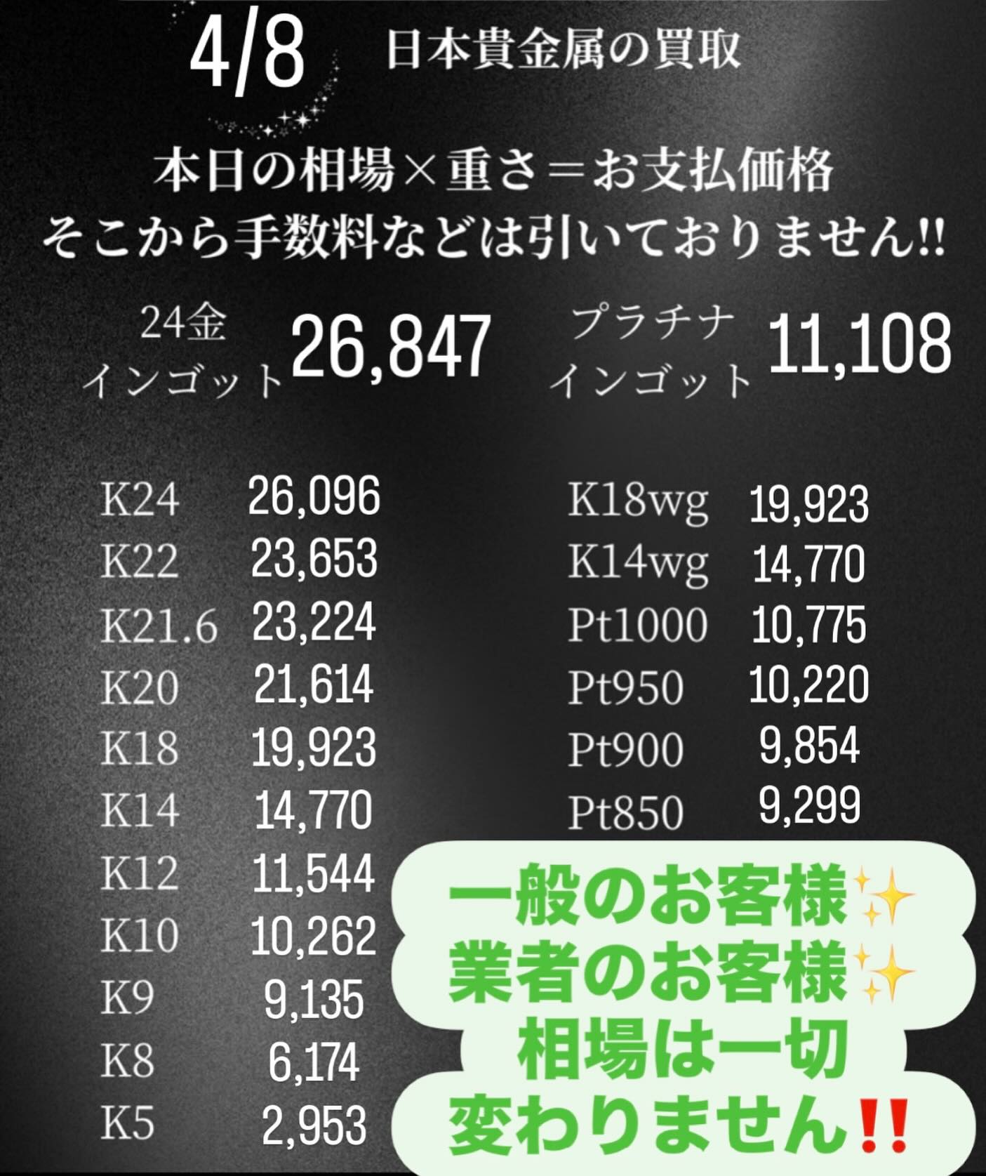 当日の買取相場×お持ち込みいただいた商品の重さ