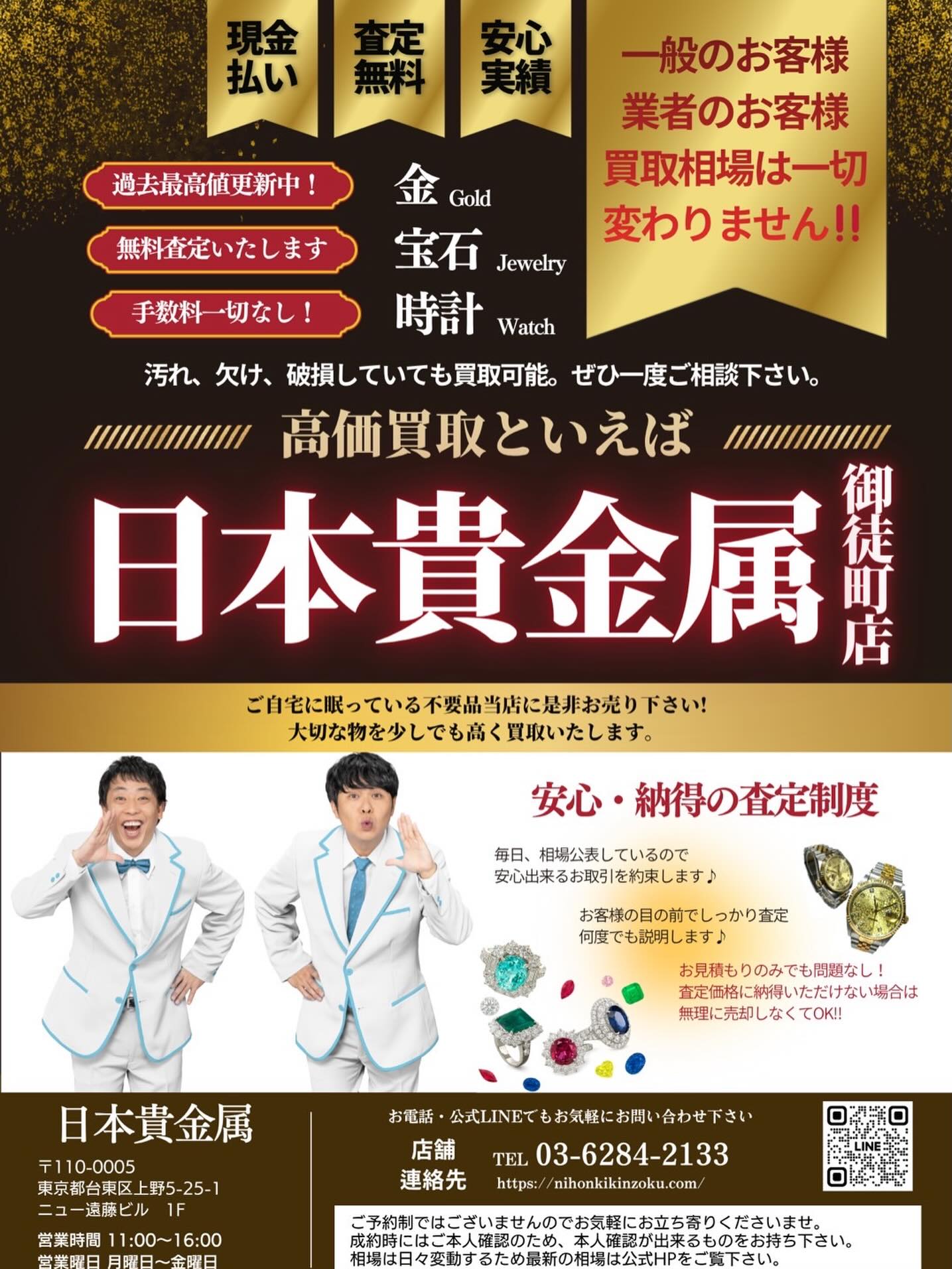 日本貴金属 御徒町店です!