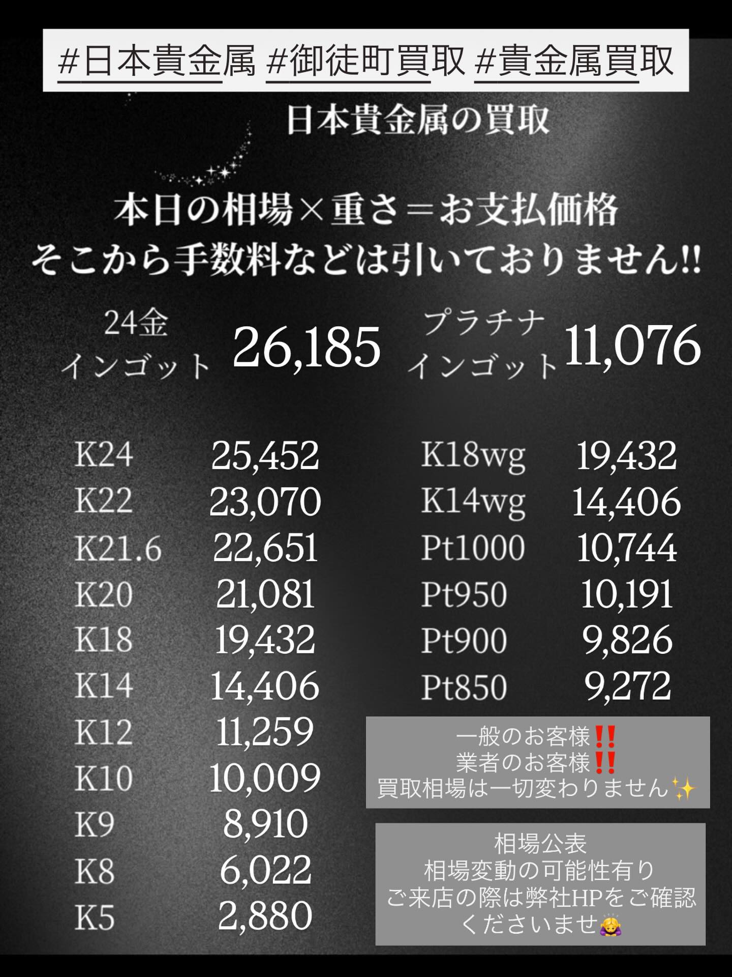 ✨日本貴金属✨買取相場✨